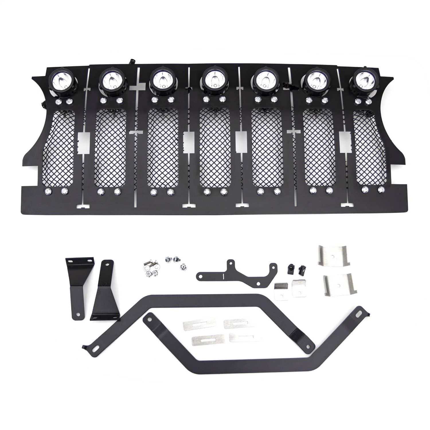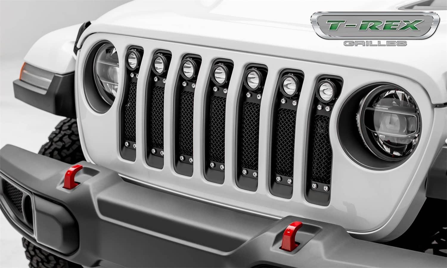 T-REX TORCH BLACK MESH LIGHTED LED GRILLE ; 18-23 WRANGLER JL ; INCLUDES HARNESS (7) 2...