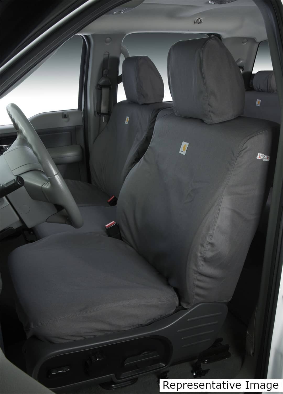 CARHARTT GREY REAR SEAT COVER 60/40 SPLIT WITH SOLID BACKREST WITH FOLD-DOWN ARMREST / CUPHOLDER WITH SEATBACK STORAGE ; 19-25 SILVERADO/SIERRA 1500 / 20-25 SILVERADO/SIERRA HD