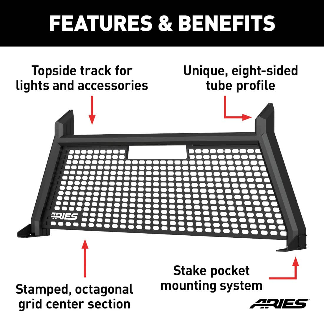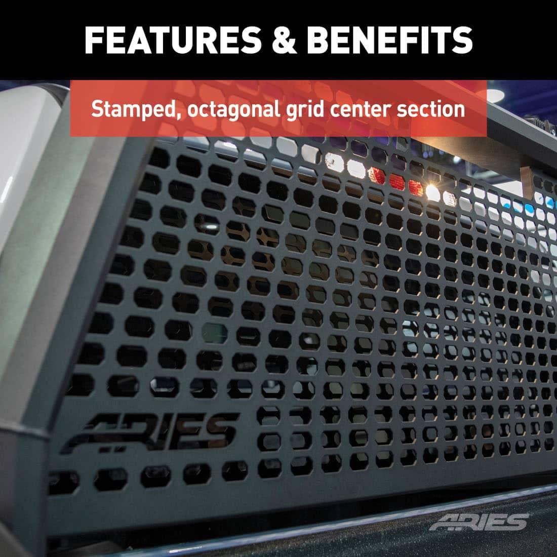 ARIES BLACK ADVANTEDGE HEADACHE RACK ; 99-16 SUPER DUTY ***MUST GO VIA TRUCK*** Eight-Sided Tube Profile...