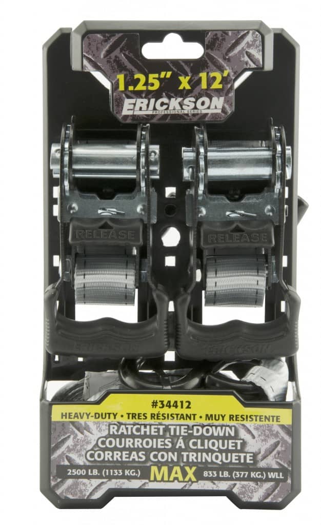 RATCHET STRAP 1 1/4"X12' RUBBER HANDLE 2500 LB 2PK Vinyl coated hooks protect against damaging your cargo...
