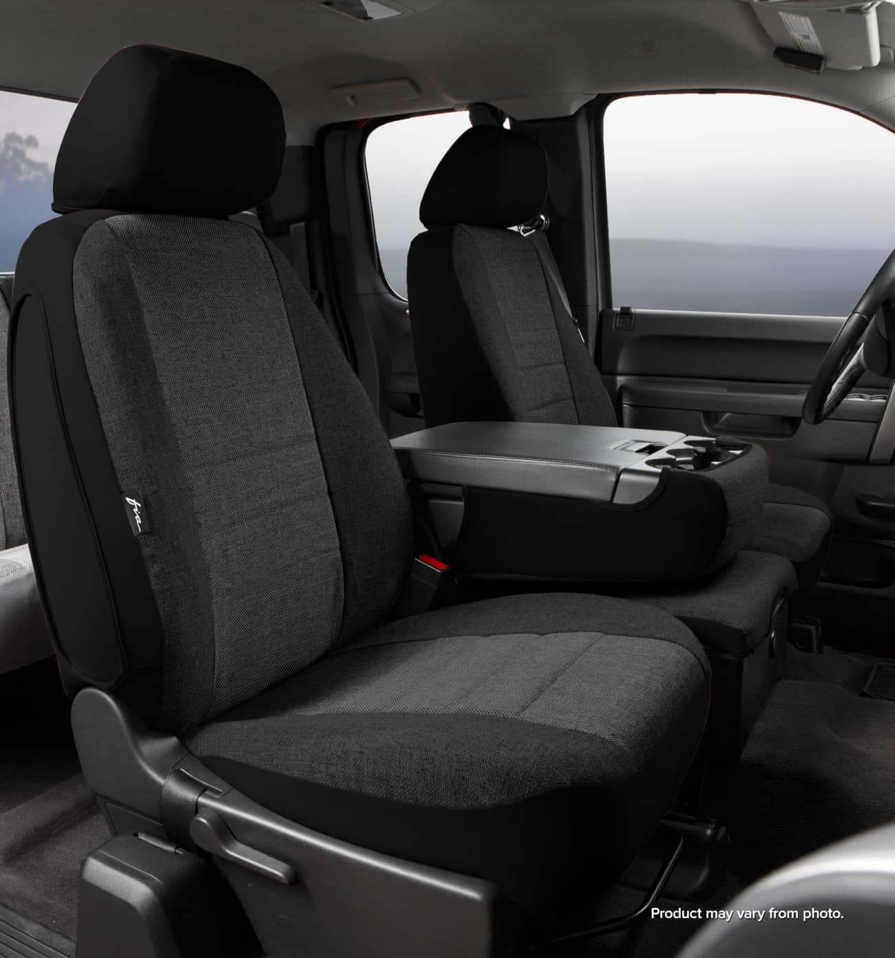 FIA CHARCOAL/BLACK OE TWEED REAR SEAT COVER ; 20-24 EXPLORER 40/20/40 SPLIT WITH ADJUSTABLE HEADRESTS & ARMREST WITH CUP HOLDER