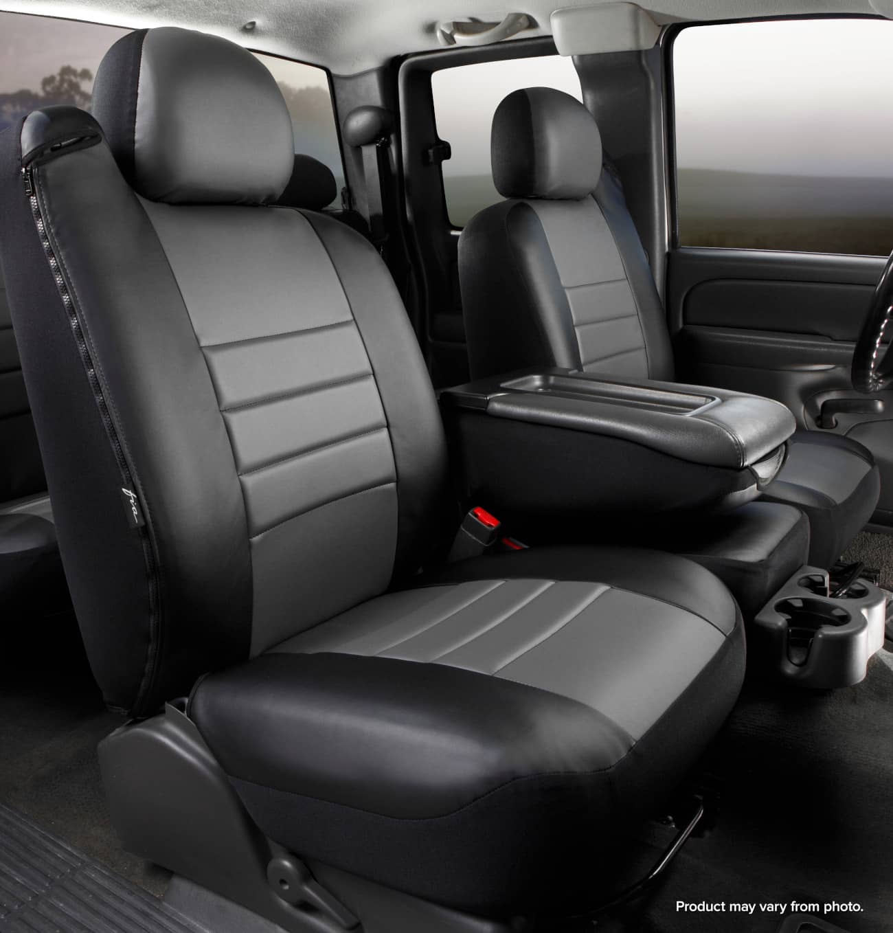 FIA GREY LEATHERLITE REAR SEAT COVER ; 20-24 EXPLORER 40/20/40 SPLIT WITH ADJUSTABLE HEADRESTS & ARMREST WITH CUP HOLDER