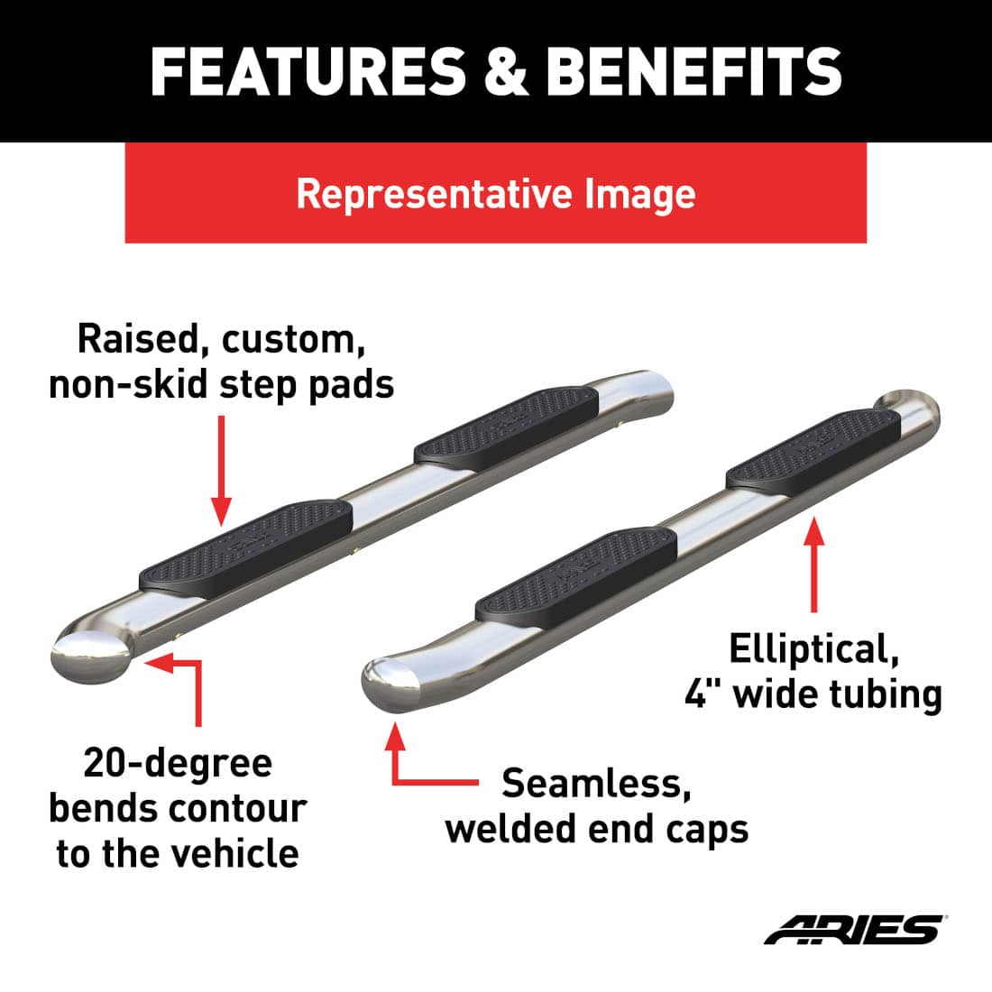 ARIES STAINLESS 4" OVAL CAB LENGTH NERF BARS ; 15-25 F150 EXTENDED CAB/ 17-25 SUPER DUTY EXTENDED CAB