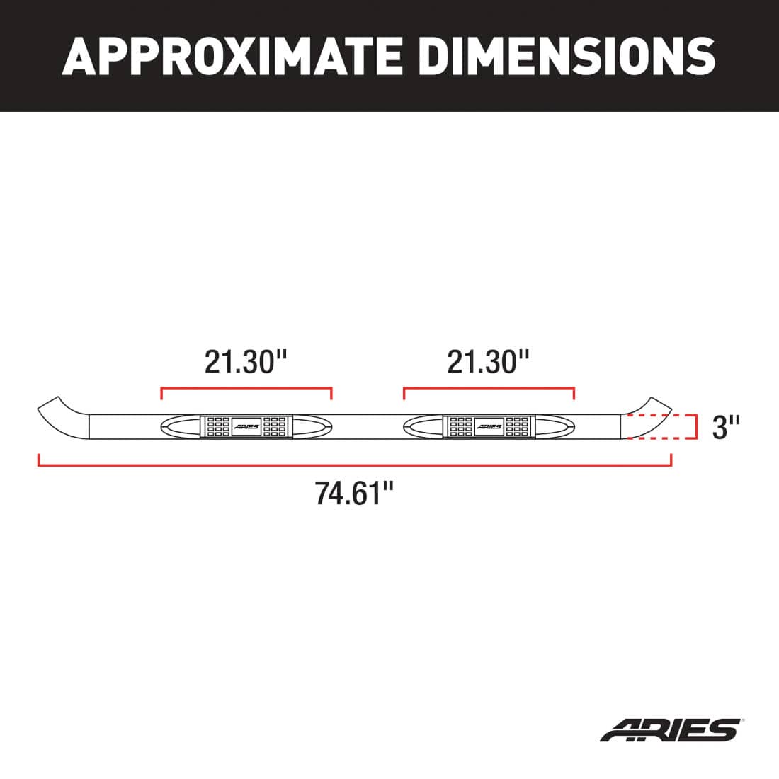 ARIES 3" STAINLESS CAB LENGTH NERF BARS ; DODGE RAM 02-08 1500/ 03-09 2500/3500 QUAD CAB